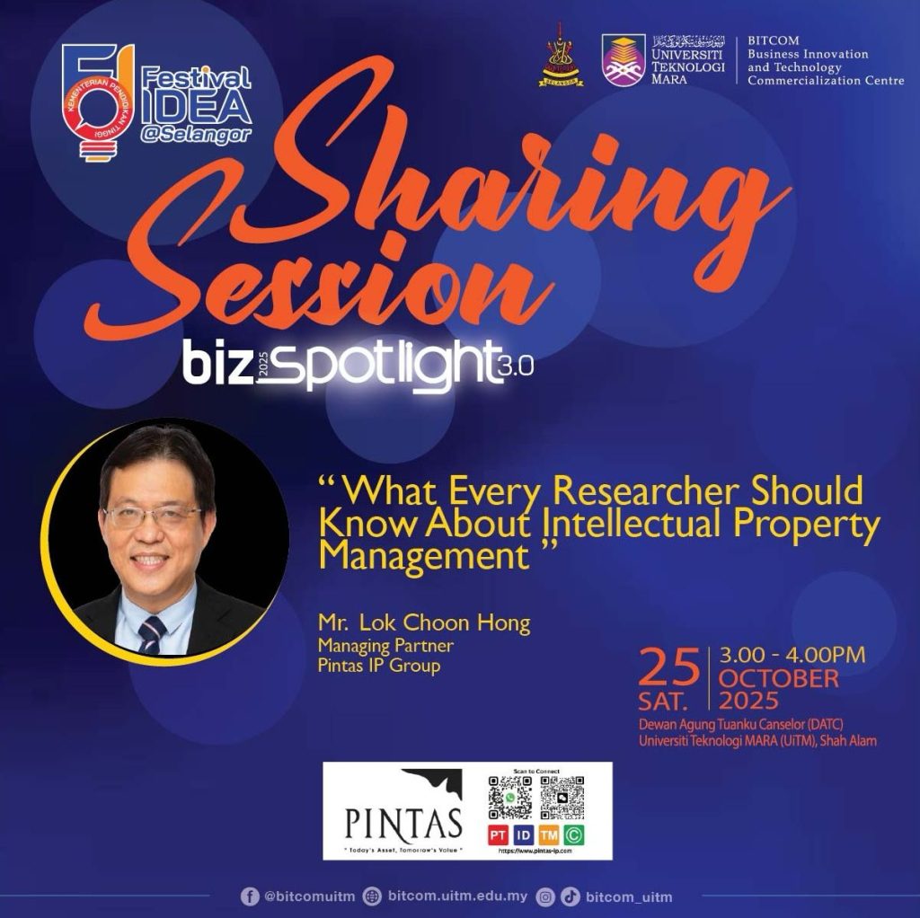 Festival Idea Selangor: Biz Spotlight Sharing – What Every Researcher Should Know About Intellectual Property Management